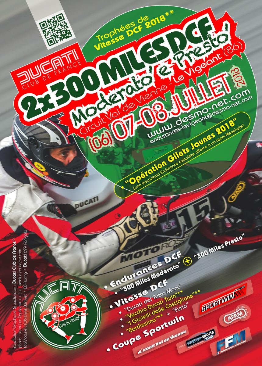 Les courses d'Endurance DCF 300 Miles Moderato et DCF 300 Miles Presto ont eu lieu du 06 au 08 juillet 2018 sur le Circuit Val de Vienne au Vigeant (86).