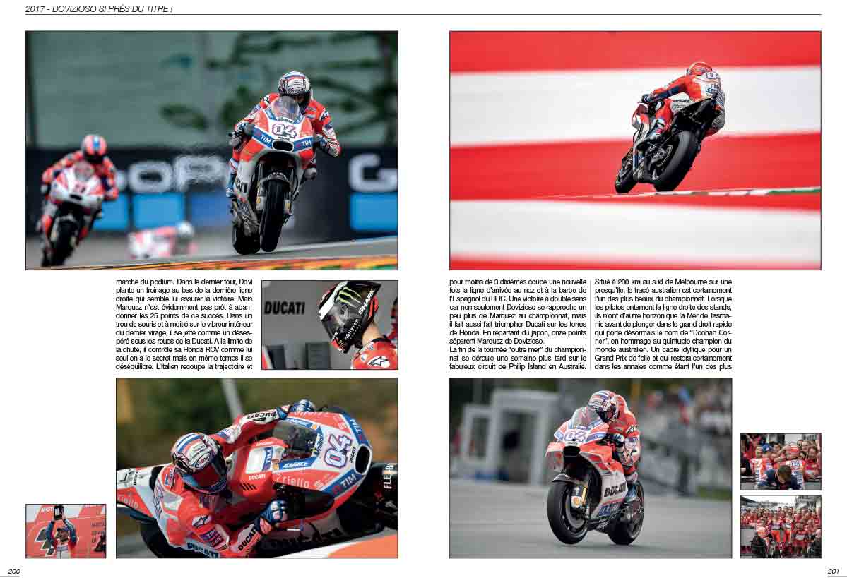 Ce titre consacre dix pages à l'histoire de Ducati en GP' avant 2003 (chapitre exposant notamment la Cagiva 500 GP), puis de 6 à 16 pages par saison, depuis 2002 jusqu’à 2018.